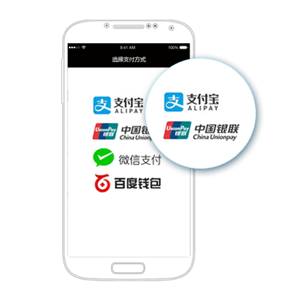 远付宝,为iOS/Android原生/H5 App提供支付解决方案:支持微信支付、支付宝支付、银联手机支付、百度钱包等。